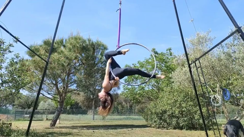 Aerial Lyra/Hoop – Double Foot Hang