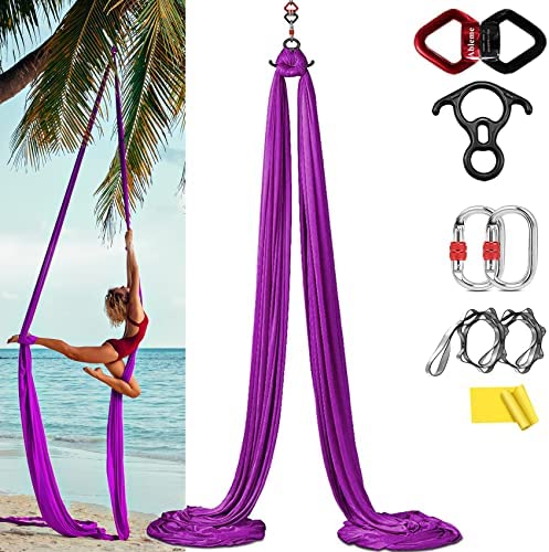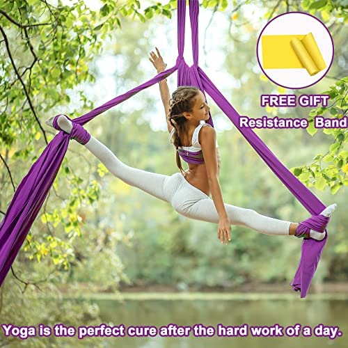 Durable & Great Value – Aerial silks yoga set includes 1x aerial silk (11YD*9.1ft), 2x steel screw-lock carabiners, 2x 3.6FT reinforced daisy chains, 1x rescue figure 8/descender, 1x infinity swivel, 1x resistance band. All in 1 box is easy for you to set up indoors or out.