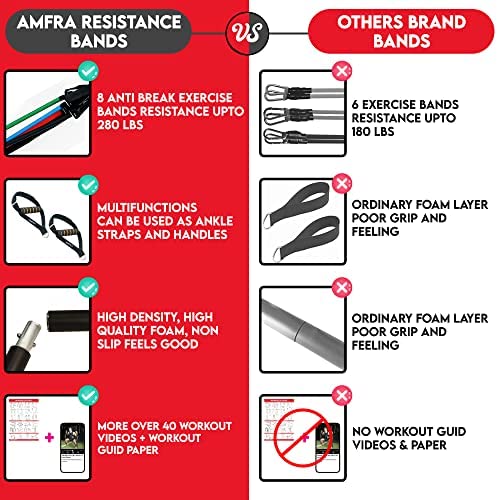 💪 {MAKE YOURSELF A PRIORITY}: Your Fitness journey will start Now. By training everyday, you will burn fats and shape your body. AMFRA workout kit will help you to reach your goals. The equipment is versatile. With the resistance bands bar, door stopper you can perform multiple workouts exercises such a squat, lunges, knee to eblow, the Bar biceps curls, door workouts, bent over rows cross bands, chest flies, Yoga, meditation etc. Let’s Work Hard and Look Good!