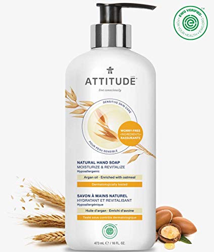 Your hands work hard every day, and they deserve to be pampered ATTITUDE Moisturize Revitalize Hand Soap for Sensitive Skin is composed of a deeply nourishing blend of argan oil and soothing oatmeal. Our hand wash will gently cleanse your hands while nourishing, soothing and replenishing your sensitive skin. Hypoallergenic, dermatologically tested EWG Verified, you can feel free to wash your hands safely without worrying about skin irritation