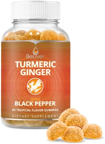 PREMIUM QUALITY GINGER GUMMIES: Quality assured at every stage of production. This turmeric and ginger supplement is made in a GMP-approved facility. All BeLive turmeric supplement gummies are heat protected with a sand coating that decreases the chance of melting, congealed or sticky gummies