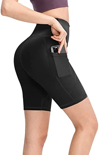 BELYIA Workout Shorts for Women with 2 Side Pockets High Waisted Yoga Shorts Women Biker Shorts Running Shorts