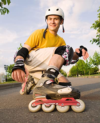 ✪【Impact Resistant Adult Elbow Pads】The thicken 18mm double – layer padding can reduce the impact effectively. It will provide better protection for your knees, elbows, wrists .And the enlarged Elbow Pads size is more suitable for Roller Skates Cycling beginner or people who like difficult skateboarding skills. protection gears allow our children to play hard while they are well protected. Using helmet and knee protective gear sets together can better provide kids with all-round protection.