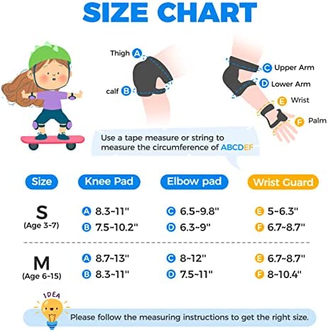 Flexible Elastic Adjustment – BOSONER skate pads kids and wrist guards adopt upgrade Adjustable elastic straps and Velcro closures to securely fit your knee and elbow