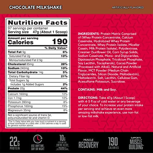 22G PROTEIN MATRIX : consisting of whey protein concentrate, whey protein isolate, calcium caseinate, micellar casein, milk protein isolate, and egg albumin