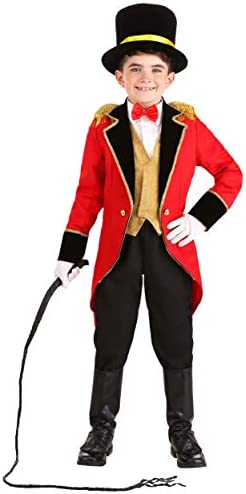 DETAILS THAT MATTER: This costume is a realistic and detailed Ringleader Costume kids will adore. The red tailcoat jacket looks like a real lion tamer jacket with its black lapels, black cuffs, gold trim, and gold epaulets. Each piece included helps complete the theme, with the top hat, bowtie, and vest adding signature style.
