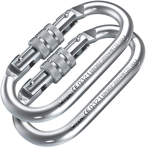 HomeApparatusClimbing Carabiner – UIAA & CE Rated 25 kN 5620 LB – Heavy Duty Rugged Terrain Locking Carabiner Clip – Industrial Strength Carabiners – Climbing, Rigging, Ropes, Hammocks