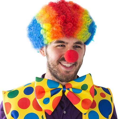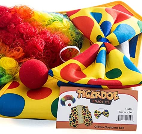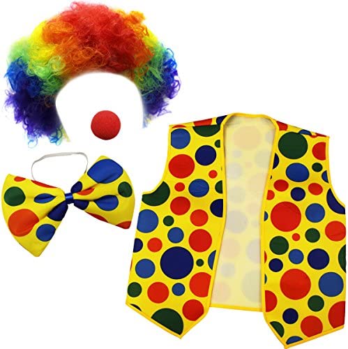 Clown Costume – Clown Nose Clown Wig Bow Tie and Vest – 4 Pc Clown Dress Up Accessories by Tigerdoe