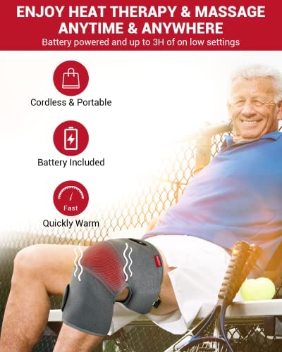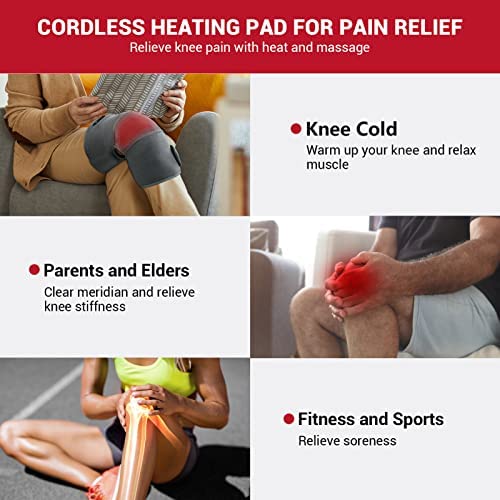 SAFE AND PORTABLE: Equipped with 5V low-voltage rechargeable battery to provide safe and stable heat therapy and massage for your knee pain relief. Easy to carry and operate, and the portable heating pad could run for up to 3H on a full charge.