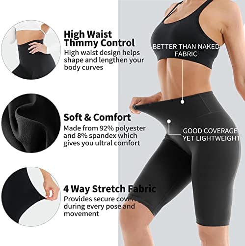 COOLOVER 3 Pack Biker Shorts for Women-8″ Buttery Soft High Waisted Tummy Control Biker Shorts for Workout Running Athletic