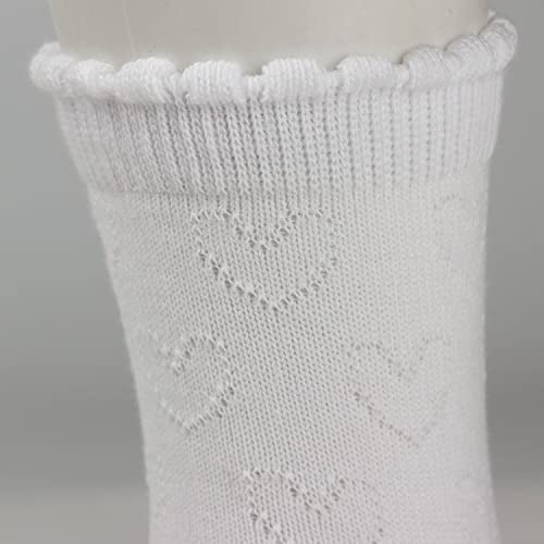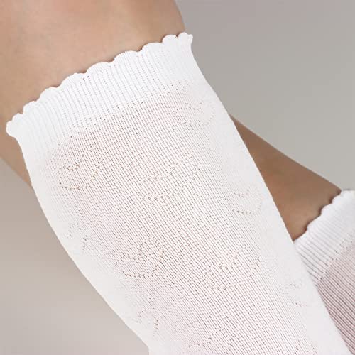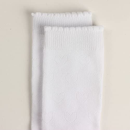 ⭐ Bright white knee high socks for girls, lovely picot ruffle top and delicate hearts or butterflies pattern in legs