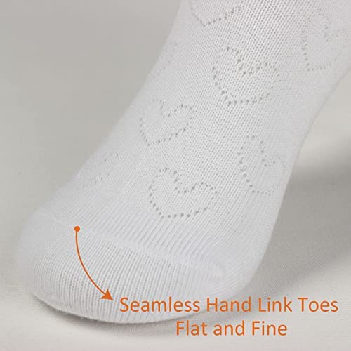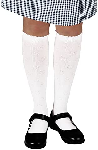Fiber Content: 81% Combed Cotton 17% Nylon 2% lycra Spandex, pure quality cotton knitted with stretchy yarns to make socks soft and comfortable Bright white knee high socks for girls, lovely picot ruffle top and delicate butterfly pattern in legs Unique for school dress, special events, churches, pageant as well as everyday fashion casual clothes. Soft COMBED COTTON plated with stretchy elastic, socks stay up well all day long. Seamless Toe (Hand Link Toe Seam) which is an expensive handcraft, provides extra comfort on toes, sensory friendly for kids. sizes from 4T to big kids 12 years old. Our sock sizes are true to size chart. SHOE SIZE MATTERS MOST. Ages are for reference only.