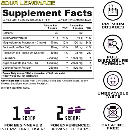 Magnesium (as Magnesium Citrate), Sodium (from Sea Salt), Potassium (as Potassium chloride), L-Citrulline, Arginine Nitrate (as NO3-T), Coconut Water Powder