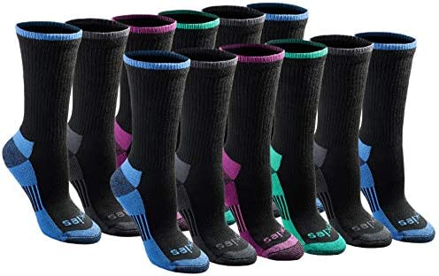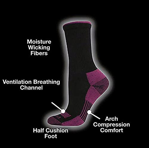 Dickies dri-tech moisture control for women crew sock combines moisture wicking fibers and mesh ventilation channels to keep feet dry and comfortable.