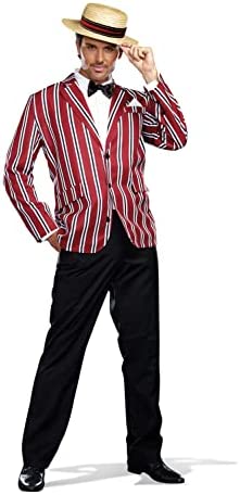 All the flappers loved him, though they knew it wouldn’t last, at least for the night, good time Charlie was a blast. Be the fine, young dapper gentleman that you are in this striped three-button jacket with hat and bow tie.