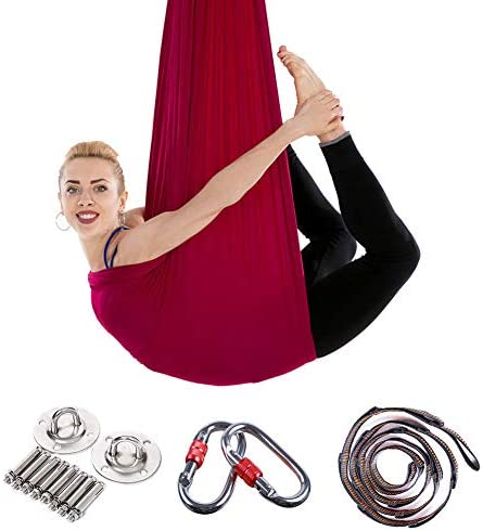 Bonus Value: The aerial hammock kit comes with aerial silk fabric (13 feet length, 9 feet width), 2 steel carabiners, 2 extension straps (each 3-feet length), 2 O-slings. Featuring an iron-clad weight capacity ensuring your safety practicing on our hammock.