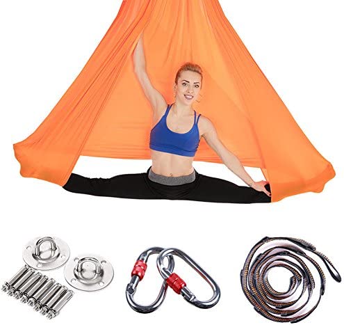 Bonus Value: The aerial hammock kit comes with aerial silk fabric (13 feet length, 9 feet width), 2 steel carabiners, 2 extension straps (each 3-feet length), 2 O-slings. Featuring an iron-clad weight capacity ensuring your safety practicing on our hammock.