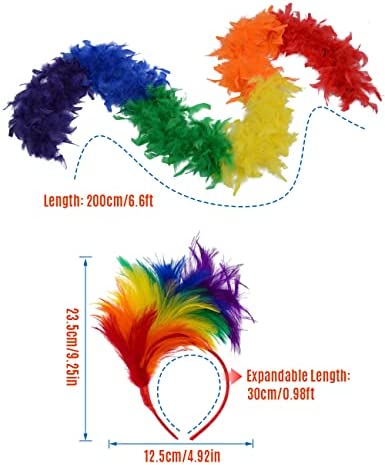 Szie: One Size Fit All. Party Feahter Boas: Length 4.0ft, Feather Headband: Feather Length: 20cm/0.66ft, Headband Length: 35cm/1.15ft