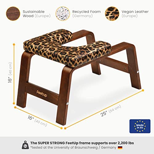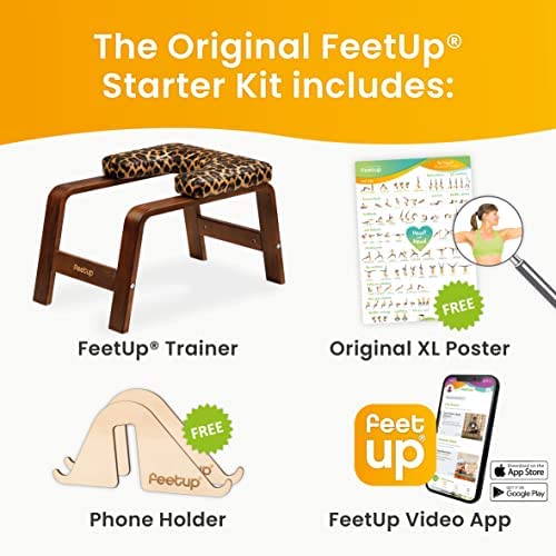 Enjoy all the benefits of inversions right away without pressure on your neck or spine! Expand your yoga practice with confidence, fun and freedom. THE FEETUP TRAINER ENABLES YOU TO: – master inversions safely and easily, within minutes – build strength, flexibility and balance – enrich and refresh your practice with countless new FeetUp Asanas and bodyweight exercises WHY stress your neck and compress your spine practicing classic headstands? WHY risk an injury? WHY struggle and limit your practice? Protect your body and take your practice to a new level with world’s first personal yoga trainer for inverted postures, bodyweight fitness and inner balance. WHAT’S IN THE PACKAGE: – FeetUp Trainer, Classic Wood Frame – Cushion, faux-leather (vegan – White – FeetUp Asanas Poster (size A2) showing over 100 yoga, fitness and relaxation exercises for your daily practice – FeetUp Practitioner’s Manual – including a First-Inversion Guide – Assembly Kit (assembly takes only 5 minutes)