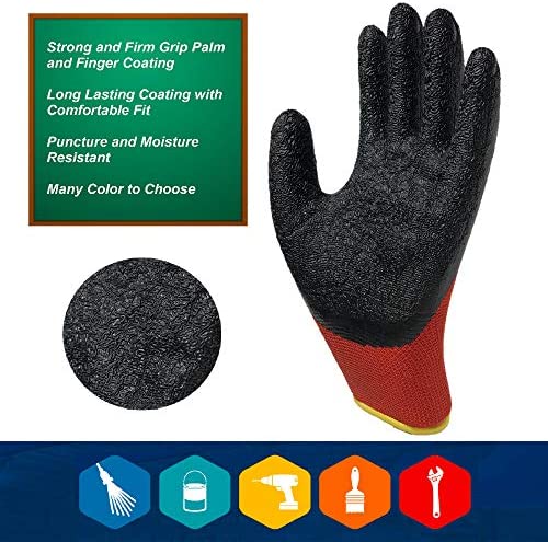 【 COMFORT HOLD GRIP 】 Work gloves with non-slip natural latex coating has strong gripping power for working in wet, dry, icy watery environments