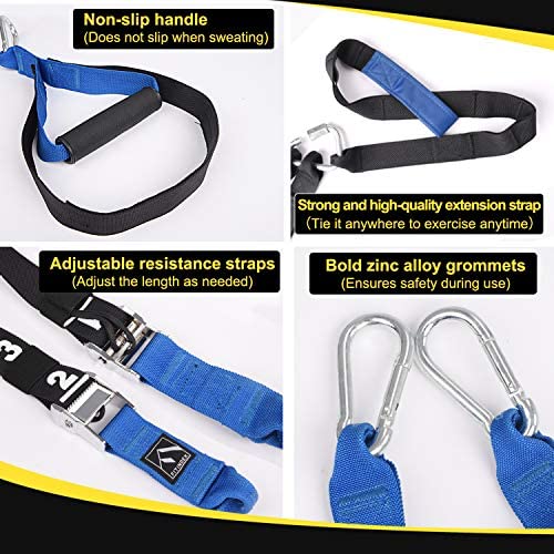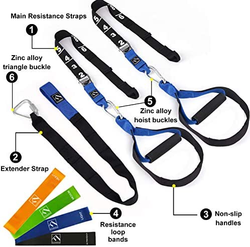 Easy to Operate – This fitness resistance trainer is easy to use and it can work out your legs, arms, back, and core at home, the park, or anywhere. The durable training straps hold up to 400 lbs.