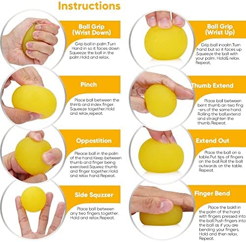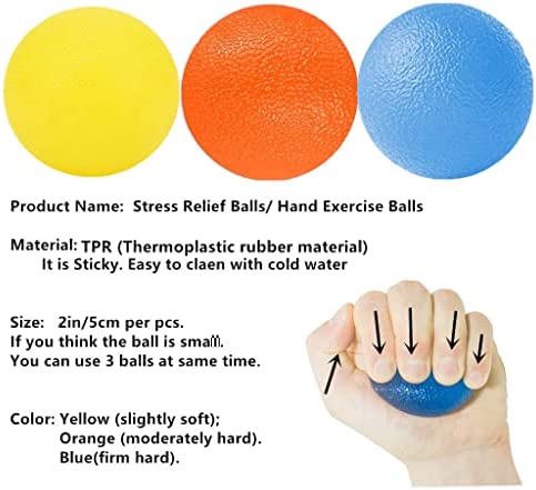 Perfect Stress Relief Balls: 1.It can greatly relieve daily stress and strengthen your hands, forearms and fingers with simple exercise. 2. Increase flexibility, improve strength, prevent stiffness, and relieve joint pain in your hand, wrist, and forearm. 3. This finger therapy balls also can help prevent mouse hand and reduces anxiety and increases blood flow and circulation throughout your hands, arms and fingers.