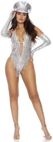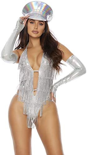 Get edgy, get fashionable and get ready to catch everyone’s attention like the on stage singer did in the 2000s. This beautiful recreation of her most memorable outfit from her famous movie about four strippers will make you ready for a jaw-dropping performance, even when that just involves walking into the party. Whether you are her fan or just like dressing up, this celebrity costume set is the perfect choice for you. Featuring a silver bodysuit with dangling fringe and matching opera length gloves, this movie character costume is sure to make you look just as sexy as her. Just pair this outfit with stilettos and you will be pretty darn close. Comfort Comes First:Our costumes are designed keeping comfort at the forefront. They may be tight-fitted and figure-hugging, but they allow you to walk and dance around conveniently and easily. The super-soft fabric keeps you comfortable all the time. It’s the perfect dress for those who want to enjoy the party and look beautiful but not at the cost of their comfort. Features: Perfect for Halloweens and fancy costume parties Durable material and stitching Easy to wear and remove Can be conveniently washed by hand Value for money costume setComplete Costume Set: Bodysuit GlovesSpecifications:Material: 90% Polyester 10% SpandexWash Care: HandwashClosure Type: Tie ClosureOrigin: China