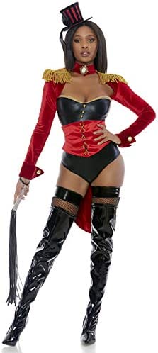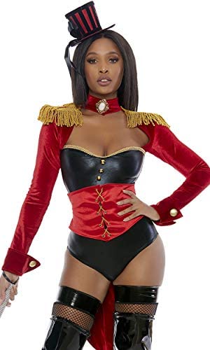 It’s a Circus out there, but you’ll be ready for anything in this tuxedo jacket bodysuit featuring bejeweled collar, fringe shoulder pads and sewn in corset.