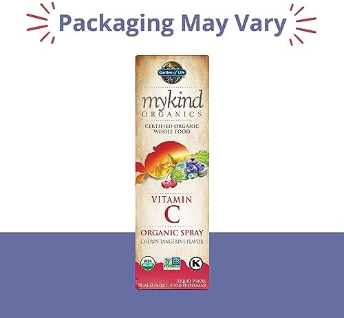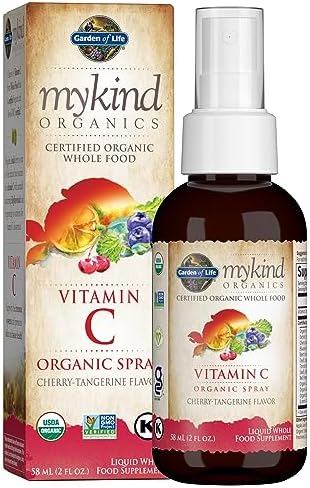 Garden of Life Organic Vitamin C for Kids and Adults, mykind Organics Spray for Skin Health – Cherry Tangerine, Supplement Antioxidant for Immune Support, 2 fl oz Liquid Drops
