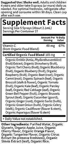ORGANIC VITAMIN C THAT’S VEGAN FRIENDLY: Our Vitamin C Spray is a tasty liquid that’s real to the root—tested at every step—so you don’t have to settle for less than Third Party Certified USDA Organic, Non-GMO, Vegan, Gluten Free, Kosher & Carbon Neutral