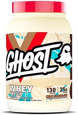 GHOST WHEY Protein Powder, Milk Chocolate – 2lb, 25g of Protein – Whey Protein Blend – ­Post Workout Fitness & Nutrition Shakes, Smoothies, Baking & Cooking – Soy & Gluten-Free