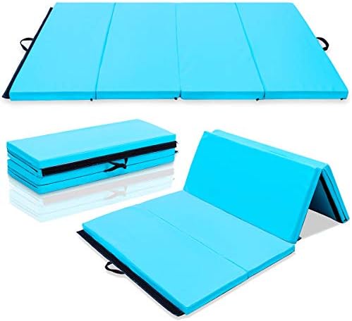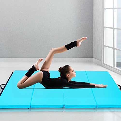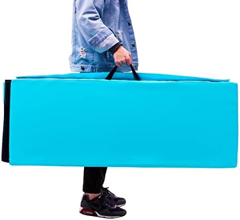 6ft x 4ft (L x W) mat is large enough for doing various exercises not only for gymnastics but also for yoga, dancing, light stretching, wrestling, martial arts, and general exercise. The mat is filled with compression-resistant EPE pearl foam and covered with thickened PU leather, which is safe, durable, and easy to clean. In addition, functional hook and loop fastener that allows you to easily fold and combine more mats together to get a large size mat. The 2 handles allow you to hold and carry around more conveniently.