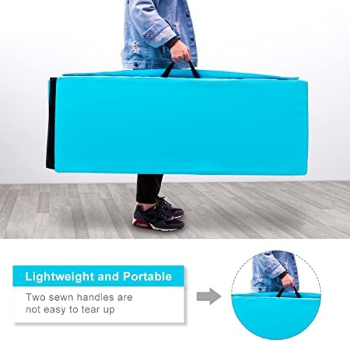 【Easy to Storage& Carry】The exercise gym floor mat can be folded into 4 sections. Therefore, it can be stored in corners to save places when not in use. Plus, 2 easy-to-carry handle grips make it portable for on-the-go exercise in parks, yards, balconies, and other indoor and outdoor activities.