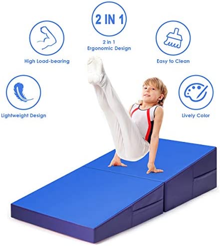 🌈 [ Incline Wedge Shape ]: The ergonomically designed incline wedge allows trainers of different levels and different purposes to comfortably use this mat, , excellent for tumbling, excise program, gymnastics, stretching, yoga, material arts, daily care activities and other uses.