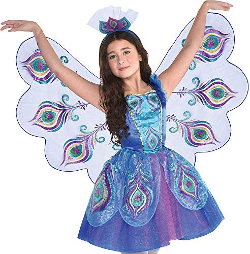 LOVELY DESIGN: Turn your little girl into a brilliant peahen as she wears this costume that features a lovely designed dress adorned with its giant wings and crown feathered headband