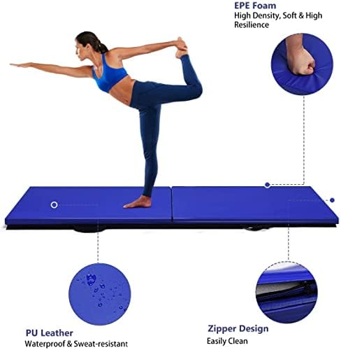 Lightweight & Portable Design: The folding gymnastic mat features practical bi-fold design with a convenient handle. Just fold the mat in several seconds and carry it with the easy-to-grip handle anywhere and start gymnastic exercise. Easily store it in the corner and save your space well.