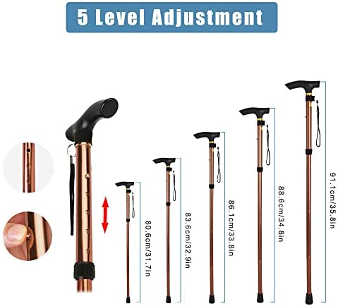 【Lightweight and Adjustable Height】The cane adjusts for heights between 33″ and 37″.