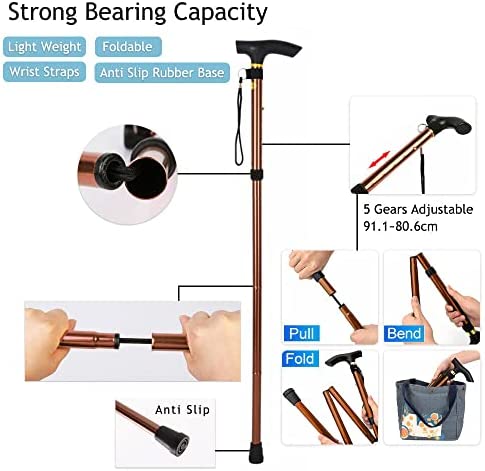 【Compact and Portable】Easily folds to compact 11″ for easy storage and traveling. When unfolded, the cane securely locks in position to provide safety and stability. The collapsible cane fits into a walker bag, purse and carry-on luggage.