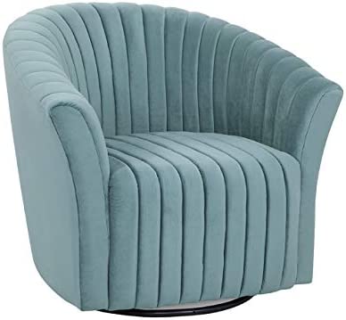 This glam deco style chair featuring tufted channels is the perfect addition to your living room décor. The Sofia armchair calls forth a retro-modern style that will become the go-to lounge spot for family and friends. 360 degrees swivel for the best view in your home and comes fully assembled.
