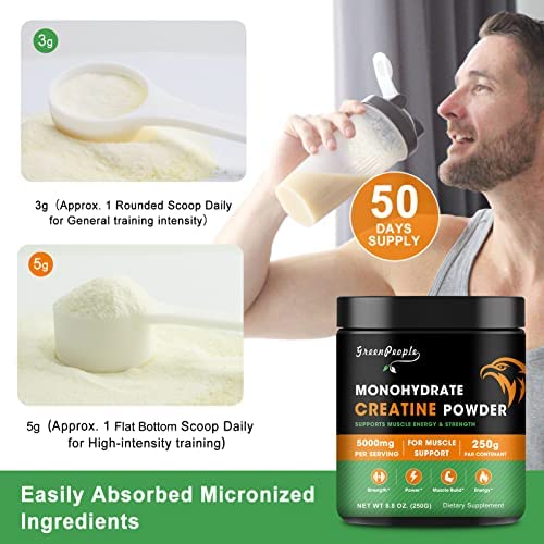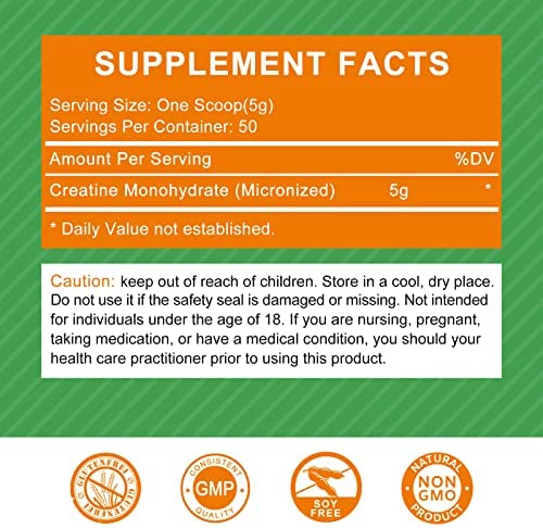 🏋PURE CREATINA MONOHIDRATADA AVAILABLE: offering 0.55lbs of straight creatine per container with 3g & 5g spoons, 5g dose feels uncomfortable you can be replaced by 3g spoon use. with a 5000mg dose that equals 50 total servings. Made with keto & vegan-friendly ingredients that are free of gluten, wheat, soy, eggs, fish/shellfish, tree nuts, and peanuts.