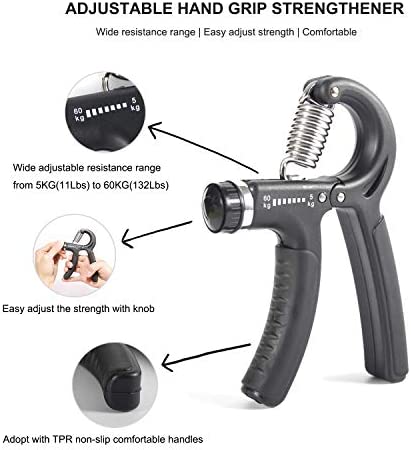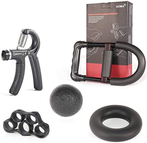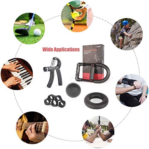 💪Hand Grip Exerciser Strengthener Kit-5 Pack: The hand grip strength exercise equipment kit contains adjustable hand grip strengthener,wrist grip strengthener,forearm exercise grip ring,hand exercise ball,finger strength trainer.-A great hand grip strength workout kit for hand grip strength training and finger strength training.
