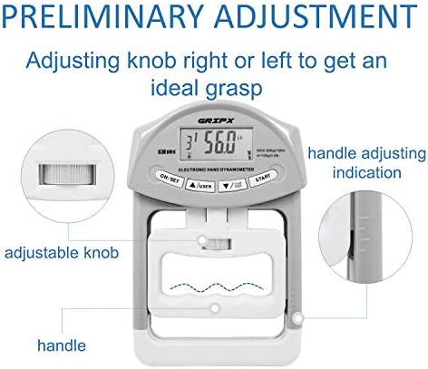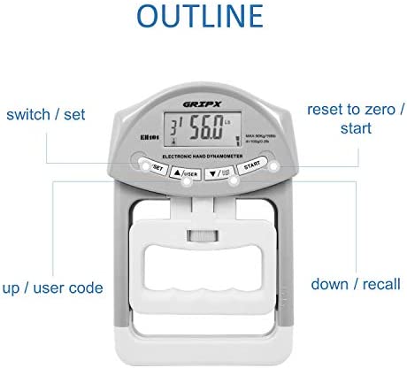 A maximum grip value display and weak, normal or strong power levels can be saved and easily recalled for comparison.
