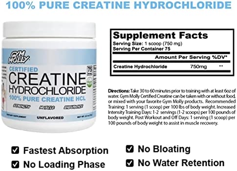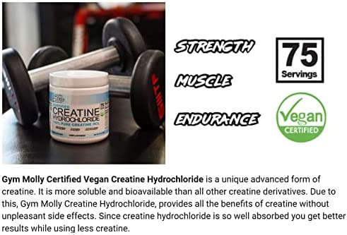 ✅ NO WATER RETENTION: Gym Molly Certified Creatine Hydrochloride provides a premium quality experience without any water retention. Creatine Hydrochloride has set the new standard for athletes looking for a clean workout routine supplement