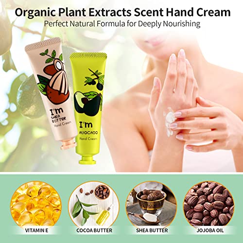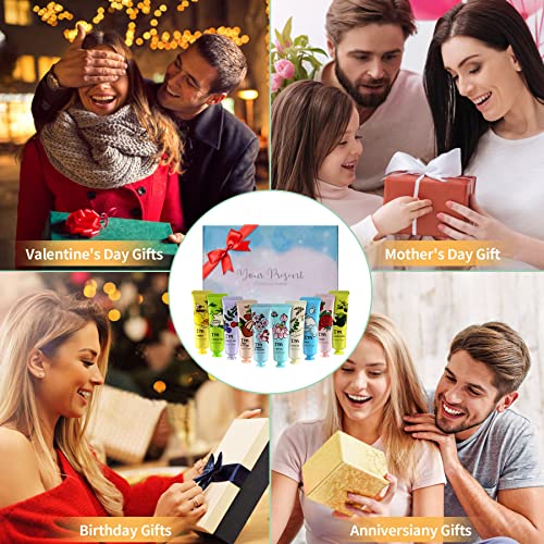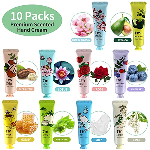 【Luxury Hand Cream Gift Set】10 PCS premium hand cream for dry cracked hands was wrapped in a beautiful gift box, this exquisite hand cream gift set are perfect gift for mom women girls wife girlfriend, ideal gift for Christmas, Valentine’s, Mother’s Day, Birthdays and Anniversaries, a must have hand lotion for dry hands 【Organic Ingredients Hand Cream for Dry Cracked Hands】Our moisturizing hand cream gift set are extracted from natural plants, it’s cruelty-free, enriched with organic Shea Butter, Vitamin E and Argan Oil. Dermatologist recommended gentle hand cream for women deeply moisturize and nourish working hands, dry hands and cracked hands 【10 Fragrances Hand Cream for Working Hands】10 natural hypoallergenic hand body skin care cream scents MILK, HONEY, ROSE, CHERRY BLOSSOM, BLUEBERRY, SHEA BUTTER, AVOCADO, GREEN TEA and ACACIA for choose. Fragrant hand cream for women leaves hands soft, smooth and rejuvenated, lifts spirit and nurtures soul 【Moisturizing Hand Cream for All Skin Type】Lightweight and non-greasy plant essence hand lotion hand cream suitable for all skin types, especially for dry, rough, water shortage, dry lines and present yellow skin. The creamy texture absorbs quickly for immediate hydration and intense repair, nourishes skin all day without leaving any residue behind 【Travel Size Hand Cream for Any Occasion】Mini hand cream for dry cracked hands especial design for on the go or keep in handbag, perfect for using at home work travel. For best results apply hand care cream after hand washing, after bathing and at bedtime, as these are the most effective times for moisturizing dry skin and boosts moisture levels
