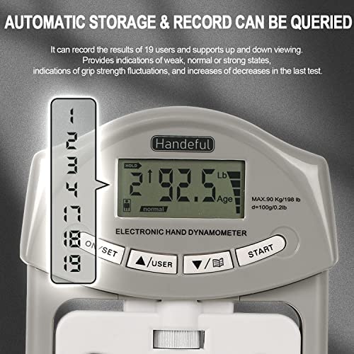HomeGripHandeful Digital Hand Dynamometer Grip Strength Measurement Meter Auto Capturing Electronic Hand Grip Power 198Lbs / 90Kgs