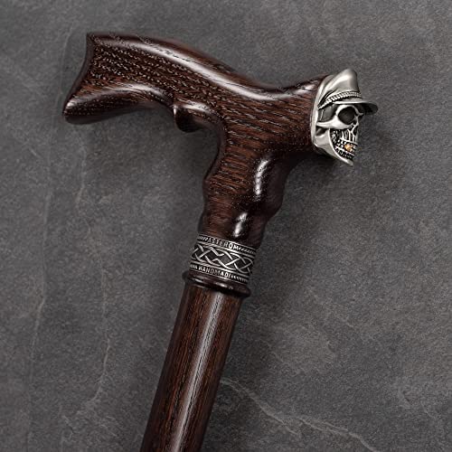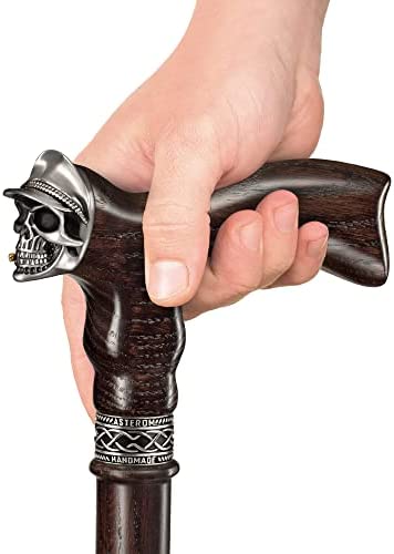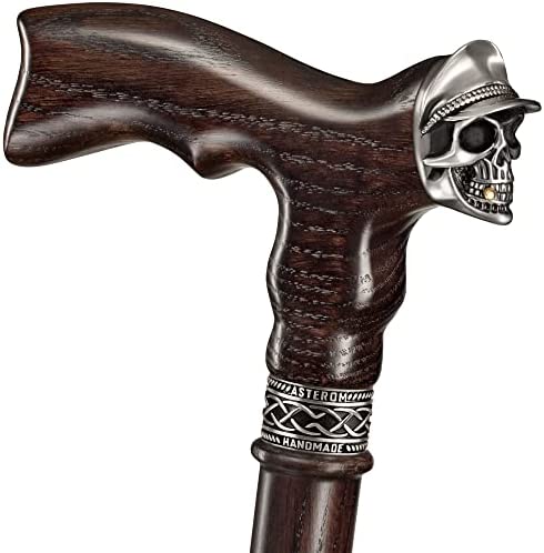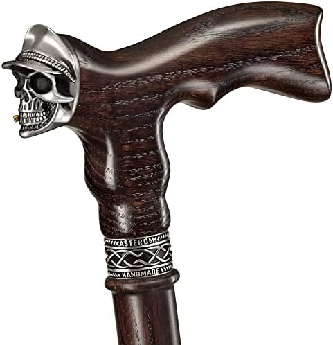 Handmade Walking Cane for Men – Skull Soldier – Unusual Men's Oak Wood Cane – Cool and Stylish Walking Stick