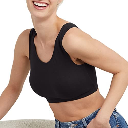 Looking for a versatile, comfortable cotton knit bra top? Look to Hanes® for this effortless bralette with endless wearing options. Wear this cotton knit bralette for low-impact workouts such as yoga, pilates, or walking. Or you can wear it on its own under a shirt or with shorts as a crop top on a summer day. Or wear it all day as one of the most comfortable light-support bras you’ll ever own. This lightweight cotton jersey bralette is made with Hanes®’ ComfortFlex Fit® 4-way stretch fabric for a flexible fit that moves every way you do. It’s also made with Cool Comfort® fabric that wicks away moisture to keep you cool and dry all day. The 100% cotton knit is soft against your skin, and the scoop front and back with wide, no-dig straps offer smoothness under clingy clothes. Light support comes from the smooth bottom band. For layering or soloing, this comfortable cotton knit bra top will find all sorts of uses in your weekend or workout wardrobe.