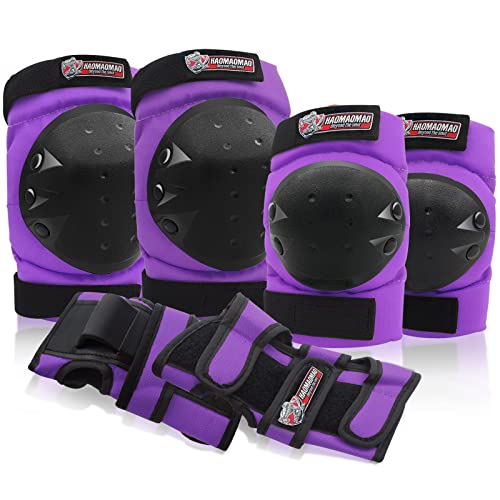 ☀ BEST GIFT CHOICE – Haomaomao adult/kids youth knee pads elbow pads wrist guards protective gear set is the good choice as the gift for children’s Day, Birthday, Christmas, etc. A variety of sizes (S/M/L/XL) and colors (black / purple / blue / yellow / red / pink) to choose from. Suitable for men and women skateboard accessories.