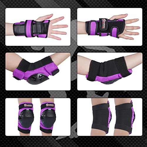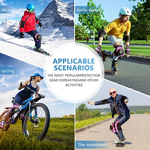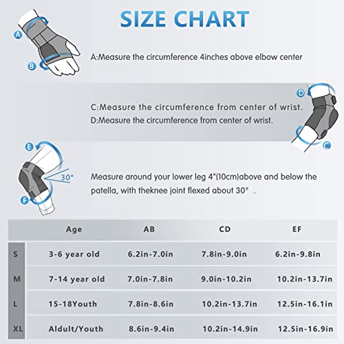 🚲 SKATEBOARDS SPORTS PROTECTIVE GEAR – Adult/Kids Youth knee pads elbow pads wrist guards are designed sports protection ,especially for ice and roller cycling skating,skateboard,hoverboard,biking,ATV,snowboarding,BMX,football and other outdoor sports.The tough plastic bumper and cushion pads of the knees elbow wrist pads are effectively impact resistance, Skate pad provide enough protection for a high impact outdoor sport.