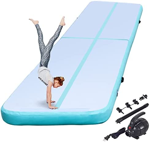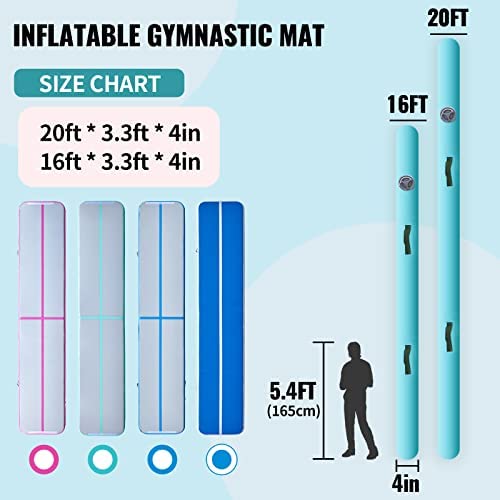 Happybuy 16ft Inflatable Air Gymnastic Mat, 4 inches Thickness Air Tumble Track with Electric Air Pump,Dubrable Material Air Mat for Home Use/Training/Cheerleading/Yoga/Water